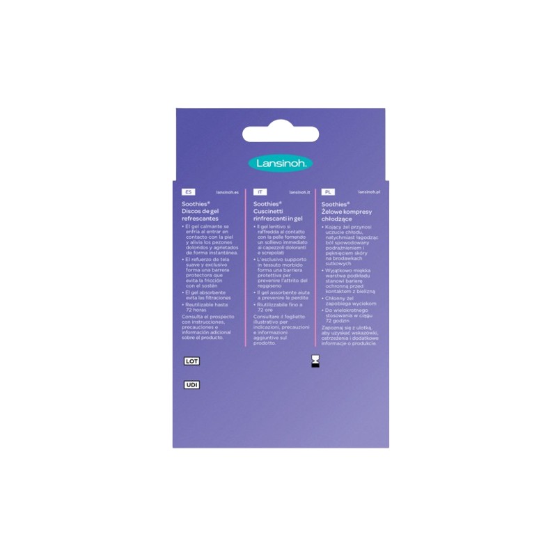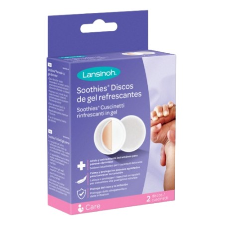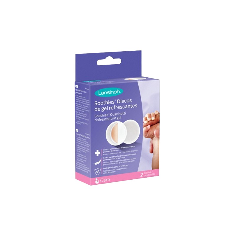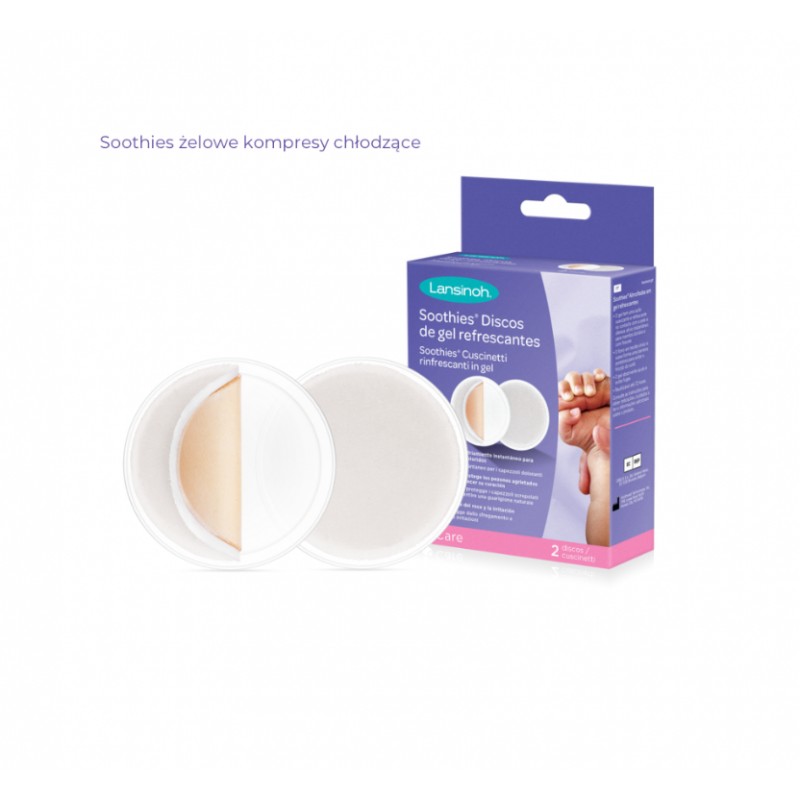 Kojący żel w kompresach Soothies® przynosi uczucie chłodu, natychmiast łagodząc ból spowodowany podrażnieniem i pęknięciem skóry na brodawkach piersi.