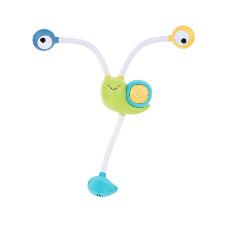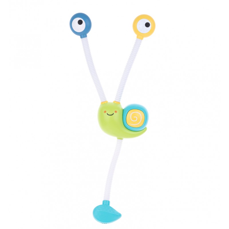 Zmień prysznic we wspaniałą zabawę z wodnym ślimakiem! Przymocuj zabawkę do ściany wanny za pomocą przyssawek, umieść w wodzie pompkę i naciśnij na ślimakową muszlę, a z oczu ślimaka tryśnie woda.