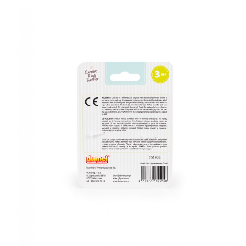 Praktyczny i higieniczny niezbędnik każdego ząbkującego malucha! Ten uroczy gryzak posiada 5 ramion, a każde z nich ma kształt innego, kosmicznego symbolu.