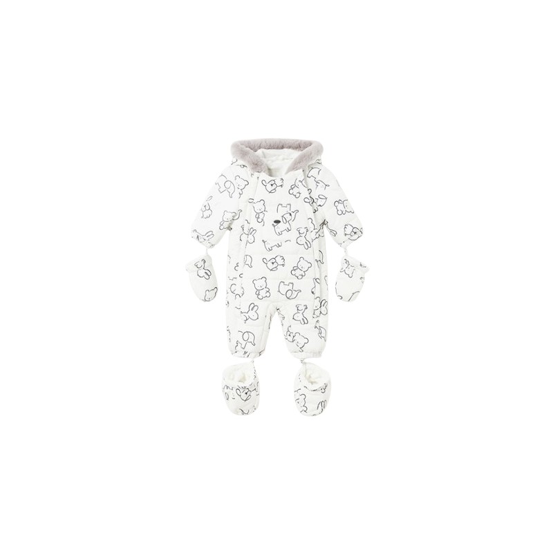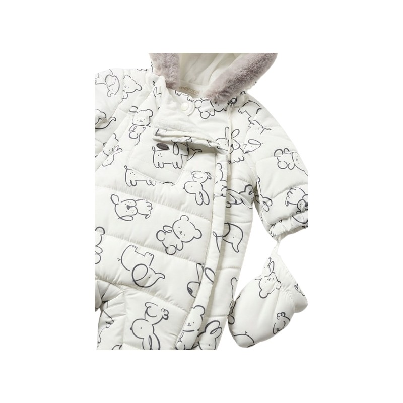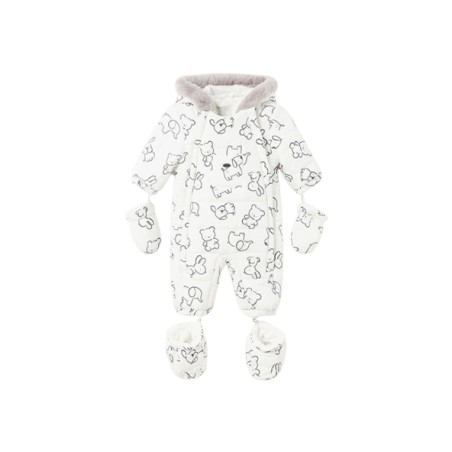 Kombinezon z długim rękawem, od firmy MAYORAL. Kaptur z futerkowym wykończeniem. Zapięcie na podwójny suwak z przodu.