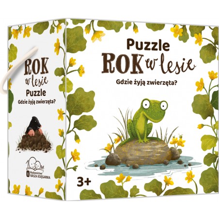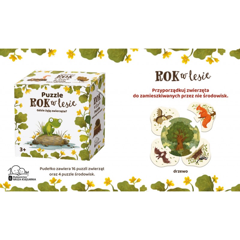 W pudełku znajdziecie 4 duże puzzle środowiskowe oraz 16 puzzli zwierząt.