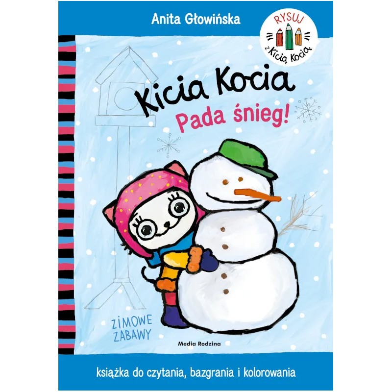 „Kicia Kocia. Pada śnieg” to kolorowanka, szkicownik i notatnik, kolejne znakomite narzędzie do zabawy dla małych fanów serii o Kici Koci autorstwa Anity Głowińskiej – tym razem w wersji zimowej.
