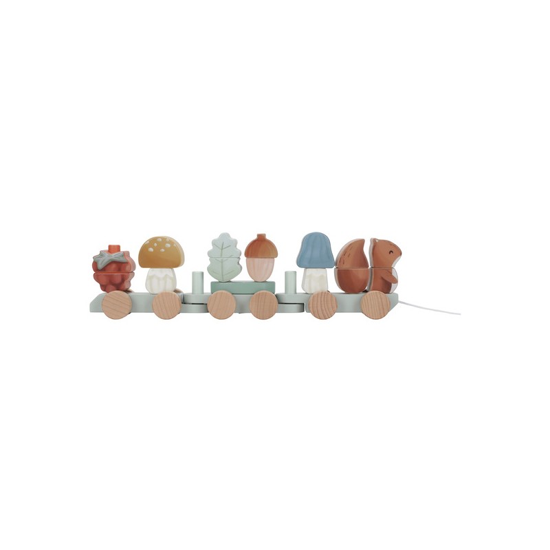 Pociąg-układanka Wiewiórka Forest Friends FSC od Little Dutch. Drewniany pociąg z uroczymi klockami ze skarbami lasu i wiewiórką na czele z kolekcji Forest Friends. Do trzech wagonów klocki można układać dowolnie wedle wyobraźni. Pociąg składa się z 18 elementów i ma około 45 cm długości. Ta zabawka fantastycznie rozwija kreatywność i motorykę maluchów, jest również miłym dodatkiem do pokoju dziecięcego. Stanowi świetny pomysł na prezent i doskonałe uzupełnienie dla pozostałych zabawek z kolekcji Forest Friends od Little Dutch.