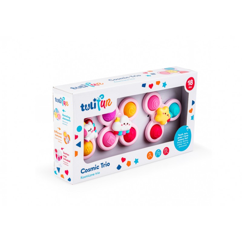 Kręć i wciskaj, gdzie tylko zechcesz! Zestaw trzech uroczych zabaweczek dostarczy wesołej rozrywki w dowolnym miejscu.