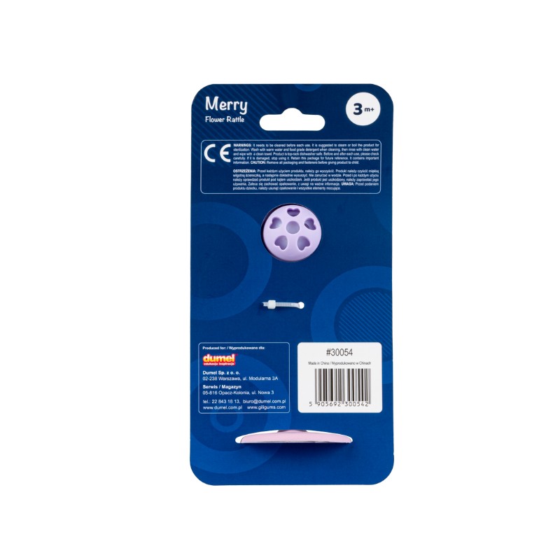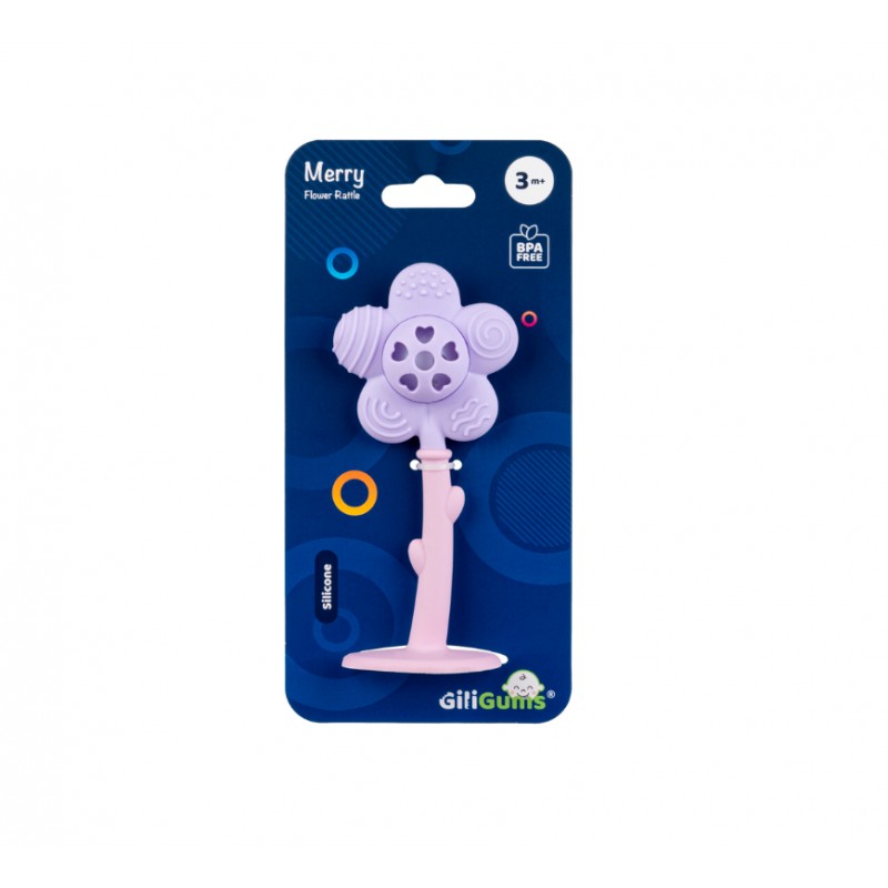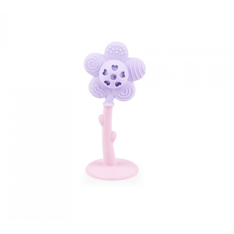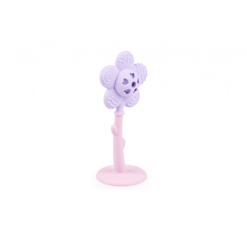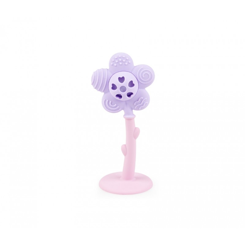 Każdy z jego płatków zdobią wypustki o zróżnicowanym kształcie, które podczas gryzienia będą masować obolałe dziąsła ząbkującego bobasa. W środku, wewnątrz kwiatka, znajduje się ukryta grzechotka, dzięki czemu przy każdym potrząśnięciu zabawki, dziecko usłyszy wesoły dźwięk. Zabawka posiada długą łodygę z podstawką, co ułatwi małym rączkom jej chwytanie oraz umożliwi postawienie jej w wybranym miejscu.
