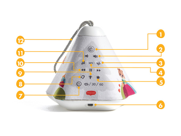 ROŚNIE RAZEM Z DZIECKIEM: Tryb 3: Bezpieczny sznurek sprawia, że smoczek jest przenośny, co pozwala na przesuwanie produktu w celu oświetlenia go w razie potrzeby lub odtwarzania ulubionych melodii dzieci.