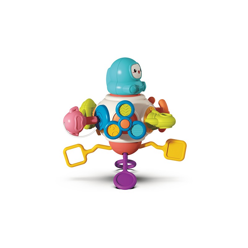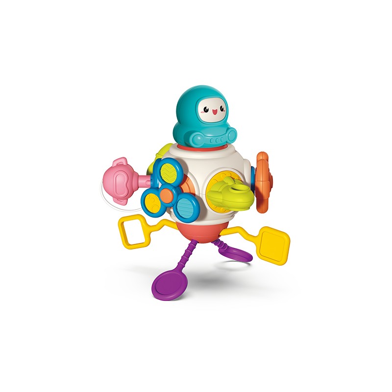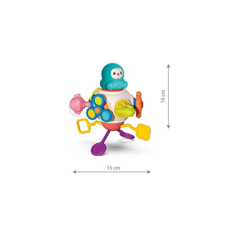 ASTRONAUT to wielofunkcyjna zabawka sensoryczna zaprojektowana z myślą o wspieraniu wszechstronnego rozwoju dzieci. Stymuluje rozwój umiejętności motorycznych najmłodszych. Poprawia również elastyczność i koordynację małych paluszków.