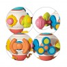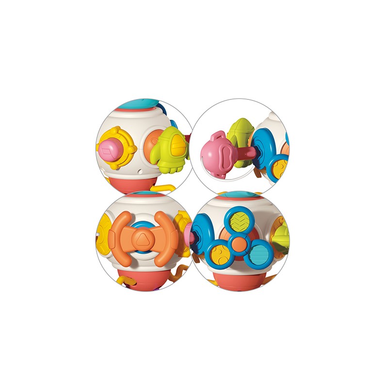 Zabawka składa się z różnorodnych elementów wykonanych z bezpiecznego silikonu oraz trwałego plastiku. Można ją ściskać, naciskać, ciągnąć i przesuwać. Zwiększa atrakcyjność w oczach dziecka a także zachęca do aktywnego i twórczego odkrywania.