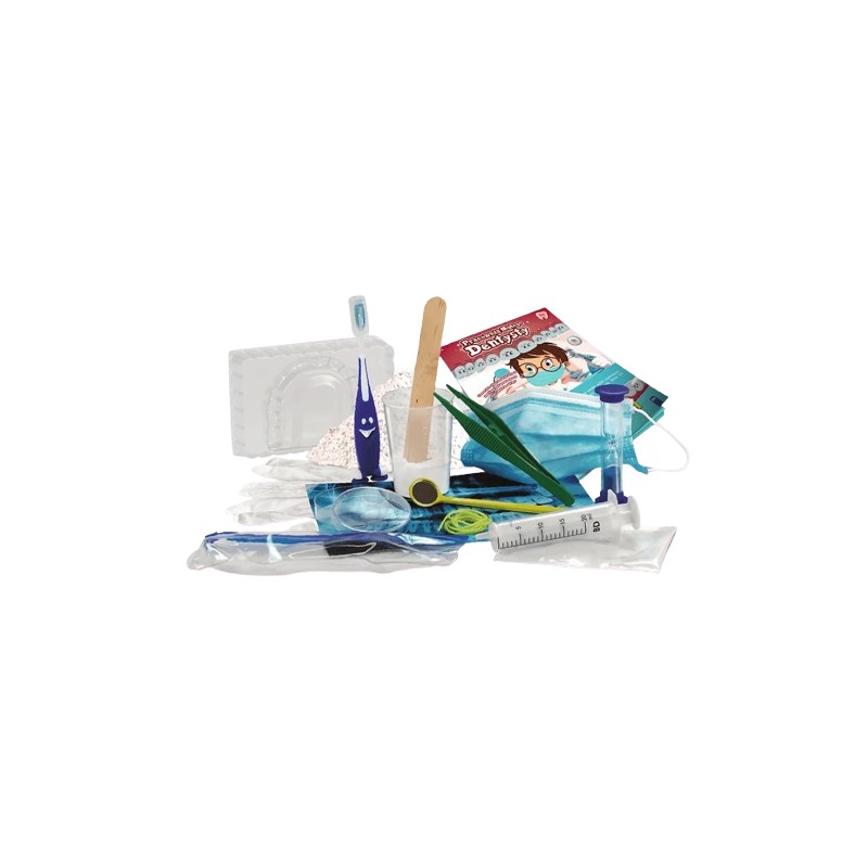 Poznaj pracę dentysty i używane przez niego przyrządy, dowiedz się, ile zębów ma dziecko, a ile dorosły człowiek i wykonaj gipsową protezę zębową. Zadbaj o higienę jamy ustnej — odmierz czas szczotkowania za pomocą klepsydry i użyj lusterka stomatologicznego, by przyjrzeć się zębom.