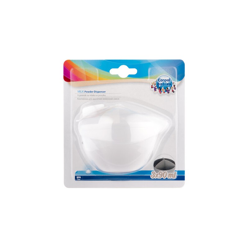 Pojemnik służy do wygodnego przechowywania mleka w proszku. Posiada trzy niezależne komory, dzięki czemu można odmierzyć trzy porcje mleka w proszku, aby przygotować posiłek dla dziecka. Pojemnik sprawdzi się zarówno w domu jak i w podróży. Idealny także do przechowywania przekąsek dla dziecka. Pojemność każdej komory to 90ml- łącznie 270ml.