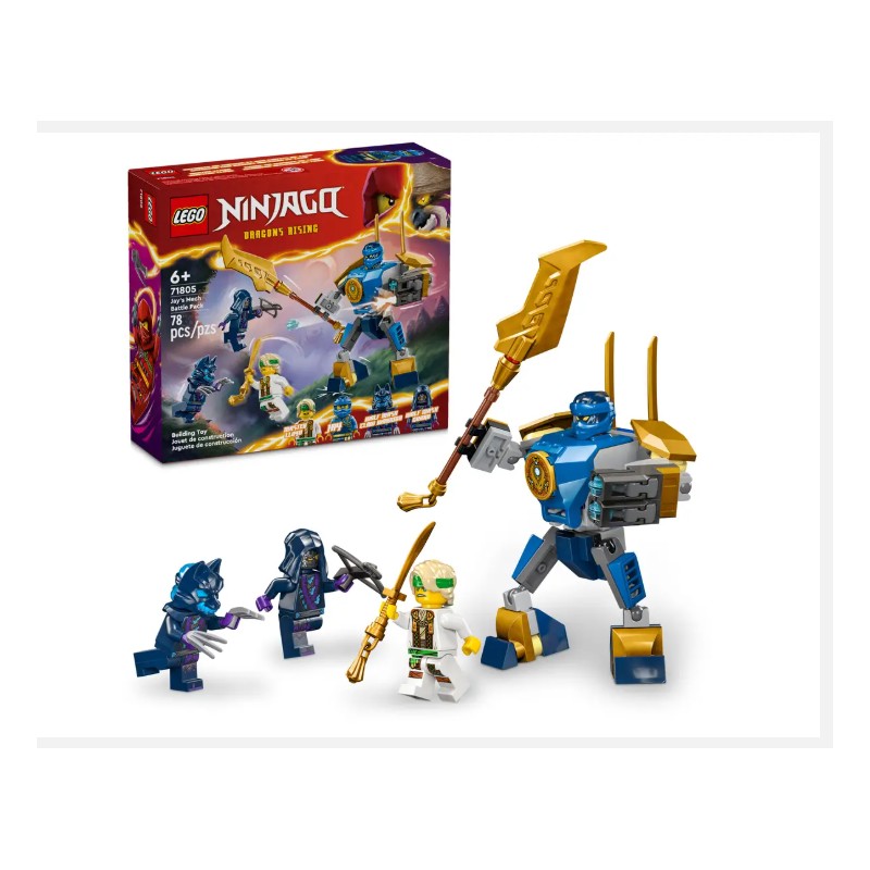 Zestaw zawiera 78 elementów Dzięki Zestaw bitewny z mechem Jaya dzieci w wieku od sześciu lat mogą odgrywać pełne akcji bitwy z drugiego sezonu serialu NINJAGO®