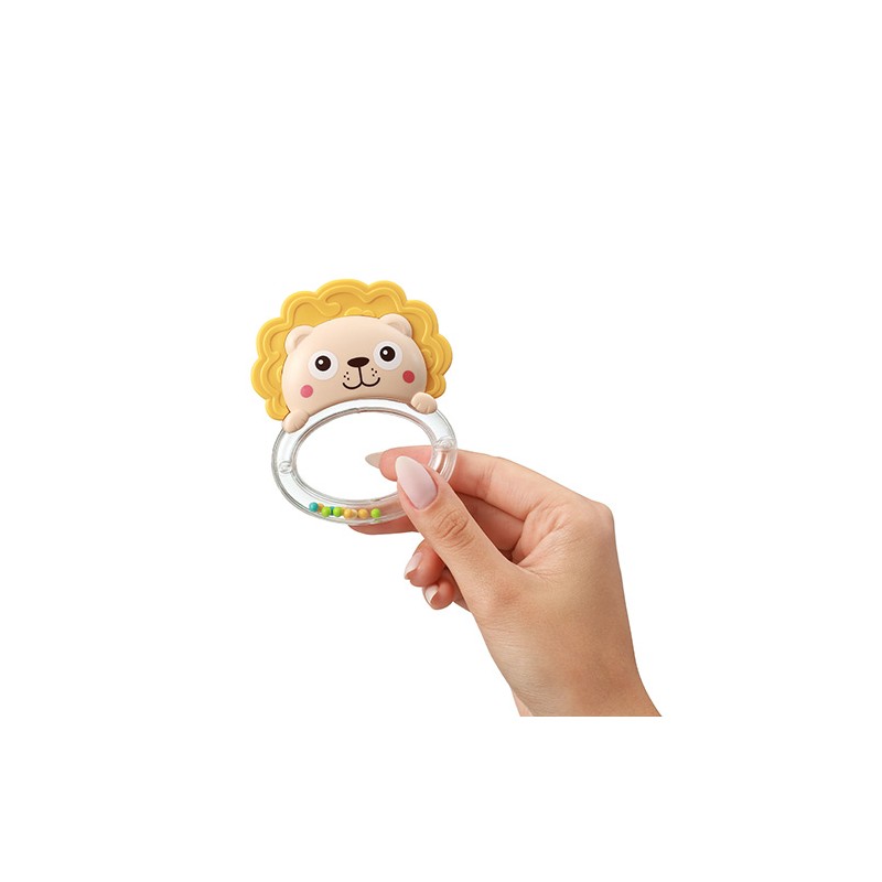 Grzechotka LION to doskonały sposób na rozwijanie koordynacji i zdolności manualnych w zabawny i bezpieczny sposób