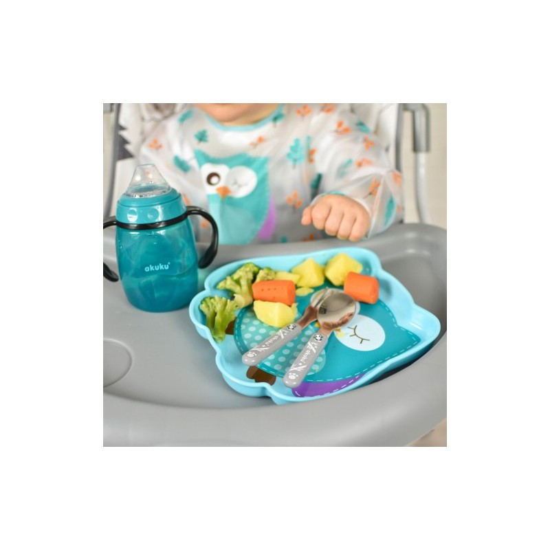Przeznaczony dla dzieci powyżej dziewiątego miesiąca życia. Idealny w czasie spaceru jak i w domu, np. podczas zabawy. Wygodne szerokie uchwyty i ergonomiczny kształt ułatwiają trzymanie kubeczka w małych rączkach, a miękki silikonowy ustnik nie podrażnia delikatnych dziąseł i pierwszych ząbków dziecka. Umożliwia picie bez rozlewania. Bardzo lekki, co jest dużym plusem przy użytkowaniu przez dziecko. Zaletą kubka jest również jego łatwość mycia oraz specjalna pokrywka zabezpieczająca ustnik przed zabrudzeniem. Odporny na uszkodzenia. W środku znajduje się zapasowy silikonowy ustnik. Produkt całkowicie wolny od bisfenolu A (0% BPA)