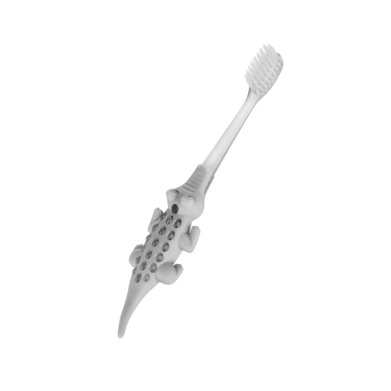 Szczoteczka przeznaczona jest do codziennej higieny jamy ustnej, przydatna również podczas masażu dziąseł, dla dzieci które nie posiadają jeszcze swoich ząbków. Główka wykonana jest z miękkiego i delikatnego włosia. Ciekawa rączka w kształcie krokodyla z pewnością zachęci dziecko do częstego mycia ząbków. Podczas regularnego używania wyrabiamy prawidłowy nawyk przy myciu zębów już u najmłodszych dzieci, tak aby jak najwcześniej przyzwyczaiło się do higieny jamy ustnej.