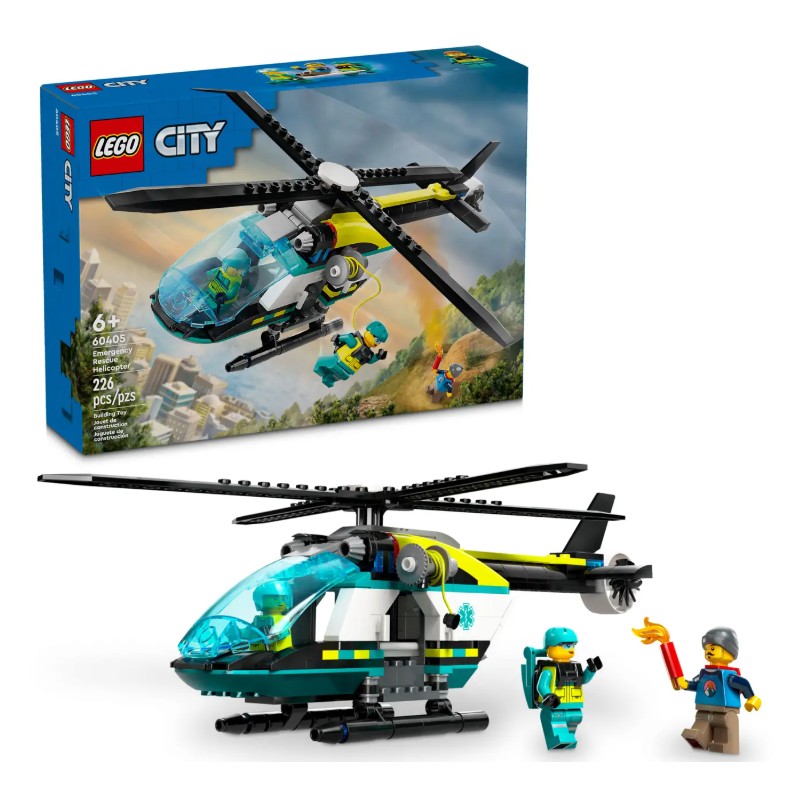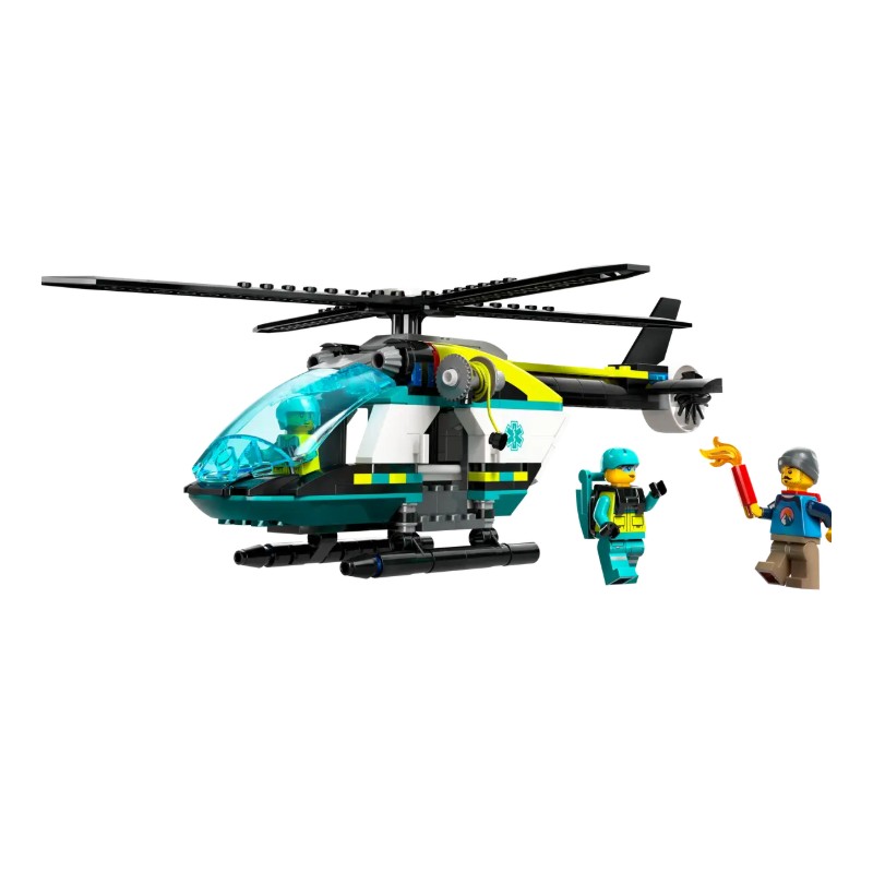 Zestaw zawiera zabawkowy helikopter z fajnym kokpitem, obrotowymi śmigłami, otwieranym włazem i działającą wciągarką. Całości dopełniają minifigurki turysty, pilota i ratownika, które inspirują do wielu godzin twórczej zabawy.