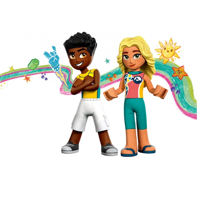 Dzieci mogą cieszyć się łatwym i intuicyjnym budowaniem dzięki aplikacji LEGO Builder. Mogą w niej przybliżać i obracać model w 3D, zapisywać zestawy i śledzić postępy. Połącz ten zestaw z zestawami LEGO Friends 41736 i 41734, aby móc przeżywać jeszcze więcej nadmorskich przygód (zestawy sprzedawane oddzielnie).