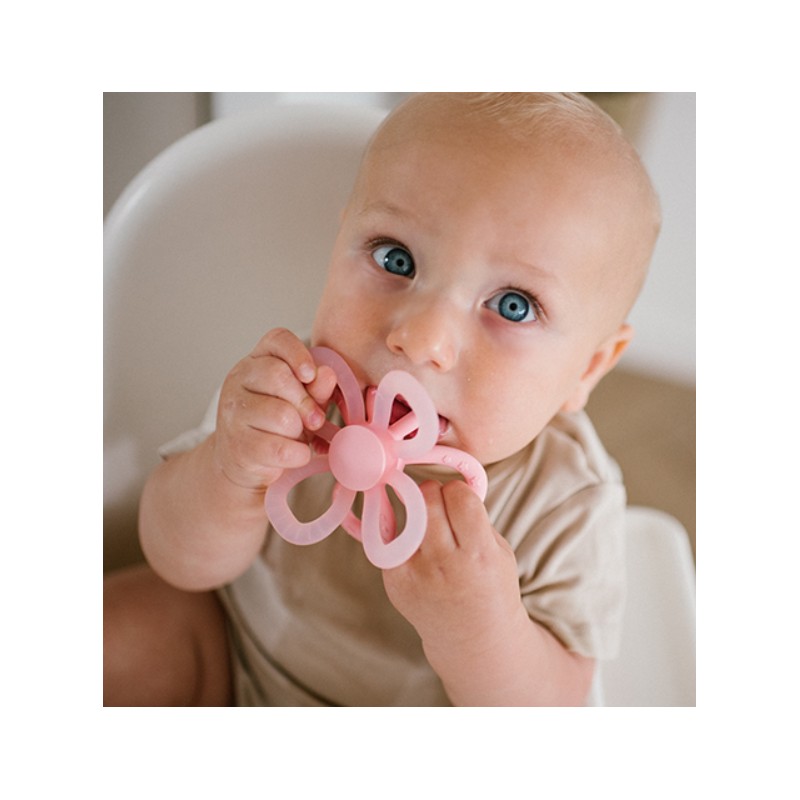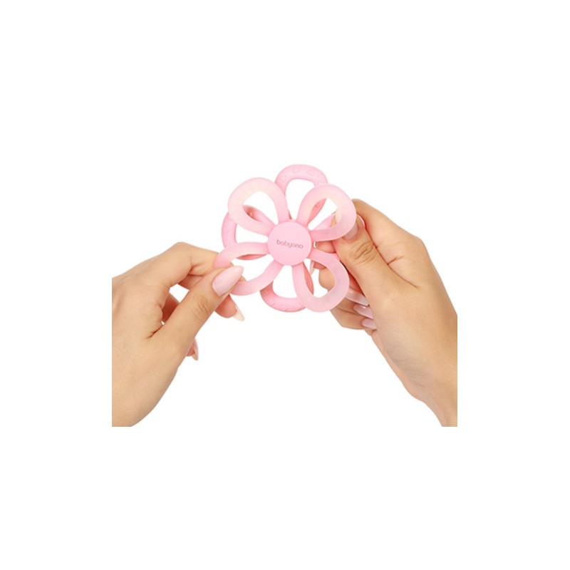 Ergonomiczny kształt został dopasowany do małych rączek dziecka. Wypustki na powierzchni gryzaka delikatnie masują dziąsła, pomagając dziecku odkrywać różnorodne faktury miękkiego silikonowego materiału.