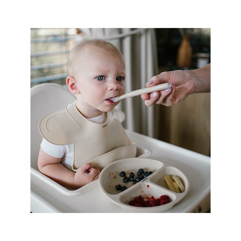 Elastyczna łyżeczka z miękkiego silikonu idealnie nadaje się do nauki jedzenia.