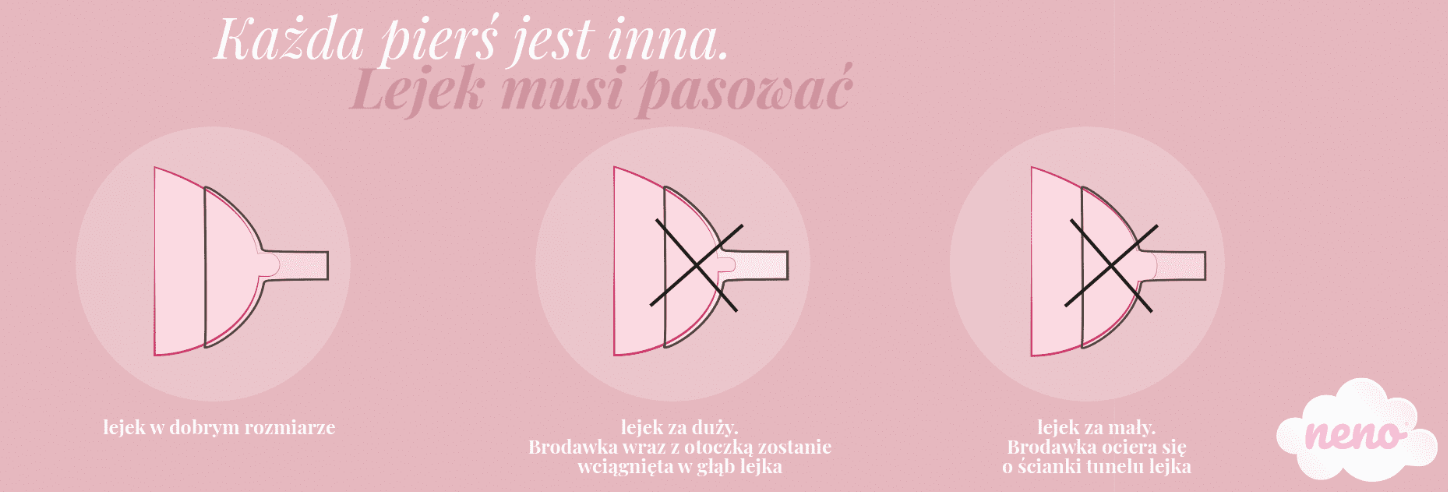 O tym jak odpowiednio dobrać rozmiar lejka do rozmiaru brodawki, przeczytasz poniżej - w opisie produktu. Produkt jest kompatybilny ze wszystkimi laktatorami butelkowymi marki Neno.