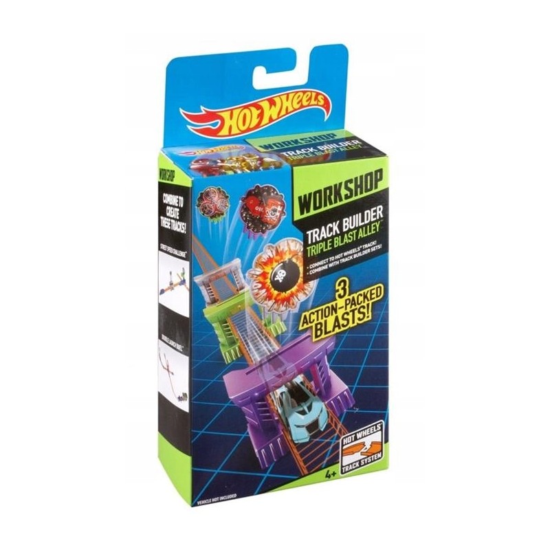 Potrójne Utrudnienie Hot Wheels® to jeden z elementów zestawu kaskaderskiego, każdy zestaw sprzedawany jest oddzielnie w zależności od dostępności. Dzięki temu masz jeszcze więcej możliwości układania torów i zabawy w sztuczki kaskaderskie.