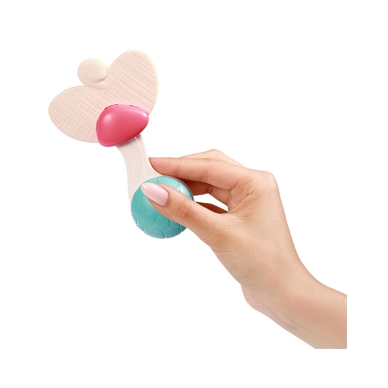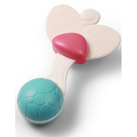 Poręczna konstrukcja grzechotki umożliwia jej wygodne trzymanie w małych rączkach dziecka. Poruszanie grzechotką wspiera rozwój zdolności motorycznych u niemowląt, pomagając w stymulowaniu koordynacji ręka-oko oraz manipulacji przedmiotami.