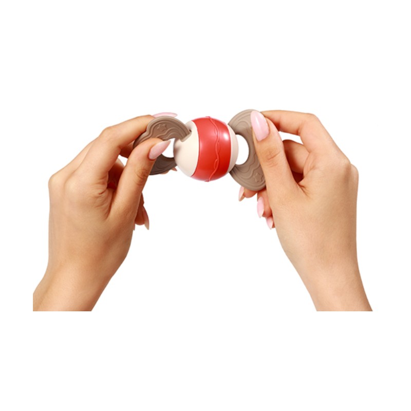 Poręczna konstrukcja grzechotki umożliwia jej wygodne trzymanie w małych rączkach dziecka. Poruszanie grzechotką wspiera rozwój zdolności motorycznych u niemowląt, pomagając w stymulowaniu koordynacji ręka-oko oraz manipulacji przedmiotami.