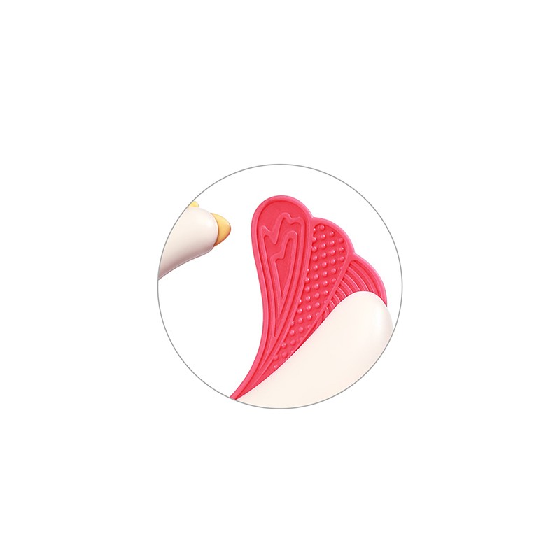 Przyjemny w dotyku silikonowy gryzak delikatnie masuje dziąsła dziecka i pozwala złagodzić ból podczas ząbkowania.