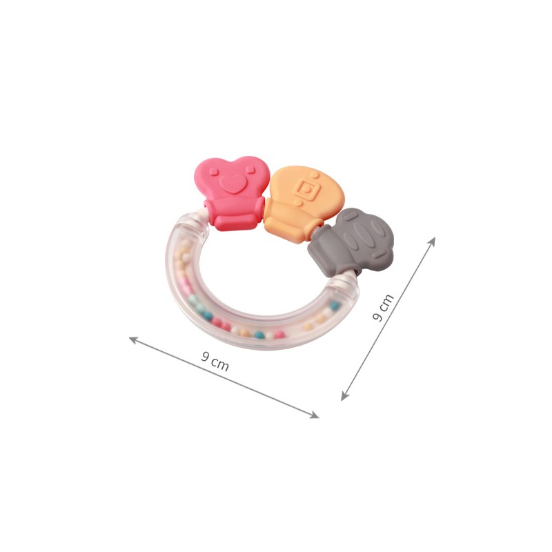 Poręczna konstrukcja grzechotki umożliwia jej wygodne trzymanie w małych rączkach dziecka. Poruszanie grzechotką wspiera rozwój zdolności motorycznych u niemowląt, pomagając w stymulowaniu koordynacji ręka-oko oraz manipulacji przedmiotami.