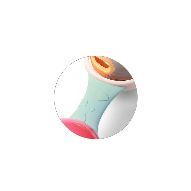 Poręczna konstrukcja grzechotki umożliwia jej wygodne trzymanie w małych rączkach dziecka. Poruszanie grzechotką wspiera rozwój zdolności motorycznych u niemowląt, pomagając w stymulowaniu koordynacji ręka-oko oraz manipulacji przedmiotami.