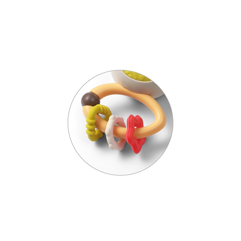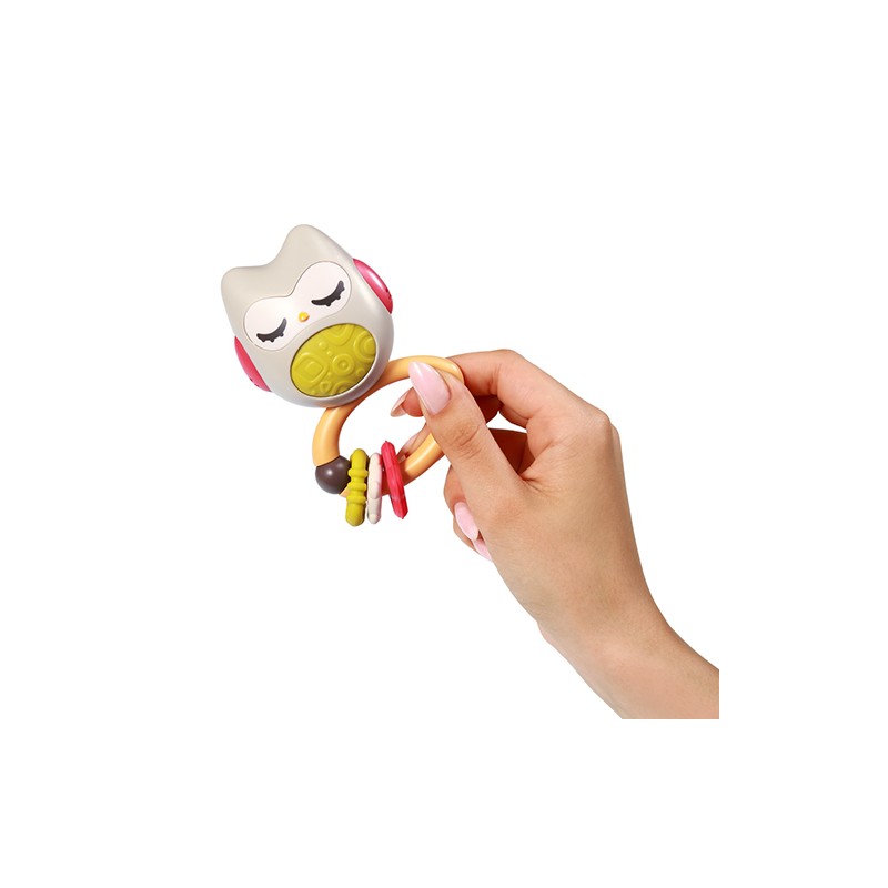 Poręczna konstrukcja grzechotki umożliwia jej wygodne trzymanie w małych rączkach dziecka. Poruszanie grzechotką wspiera rozwój zdolności motorycznych u niemowląt, pomagając w stymulowaniu koordynacji ręka-oko oraz manipulacji przedmiotami.