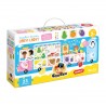 Niesamowicie kolorowa, wielka panoramiczna układanka przedstawia doskonale zaopatrzony wóz z pysznościami. Oprócz tradycyjnych puzzli edukacyjna układanka zawiera wyjmowane elementy, które należy dopasować do dziurek o różnych kształtach. To doskonały pomysł na pierwsze, wieloelementowe puzzle dla maluchów. Do puzzli dołączyliśmy poradnik pełen pomysłów na rozwijające i kreatywne zabawy.