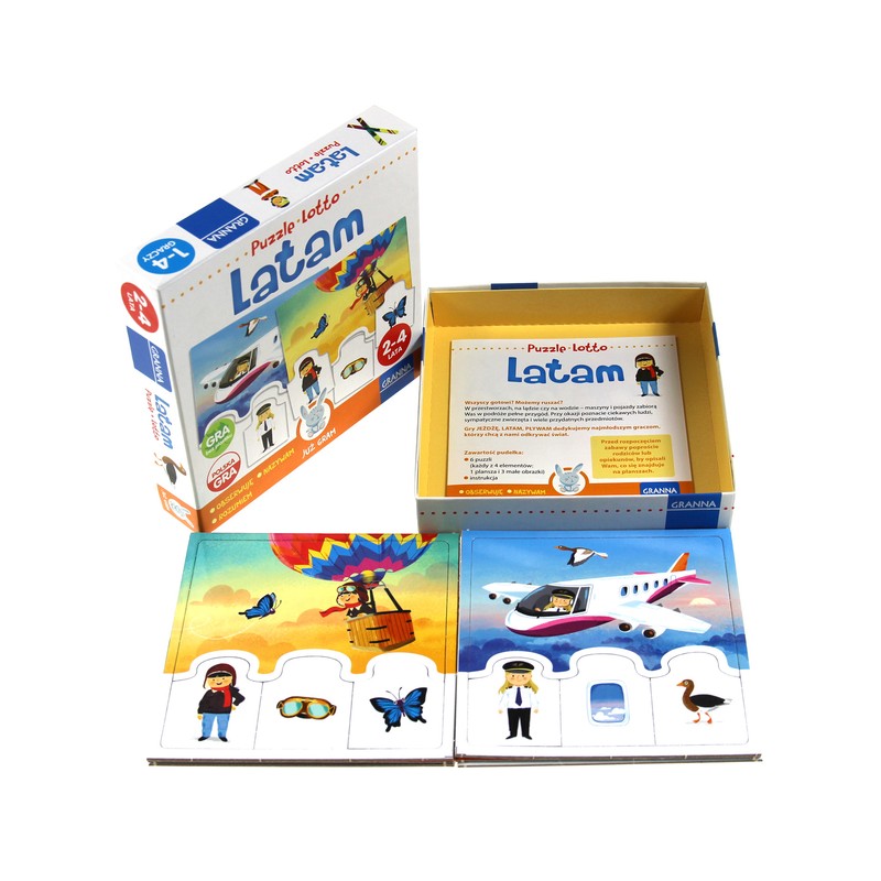 Latam Latam to puzzle loteryjka i zgadywanka w jednym pudełku. Gra pobudza ciekawość i wyobraźnię wzbogaca słownictwo jest znakomitym treningiem spostrzegawczości i pamięci.