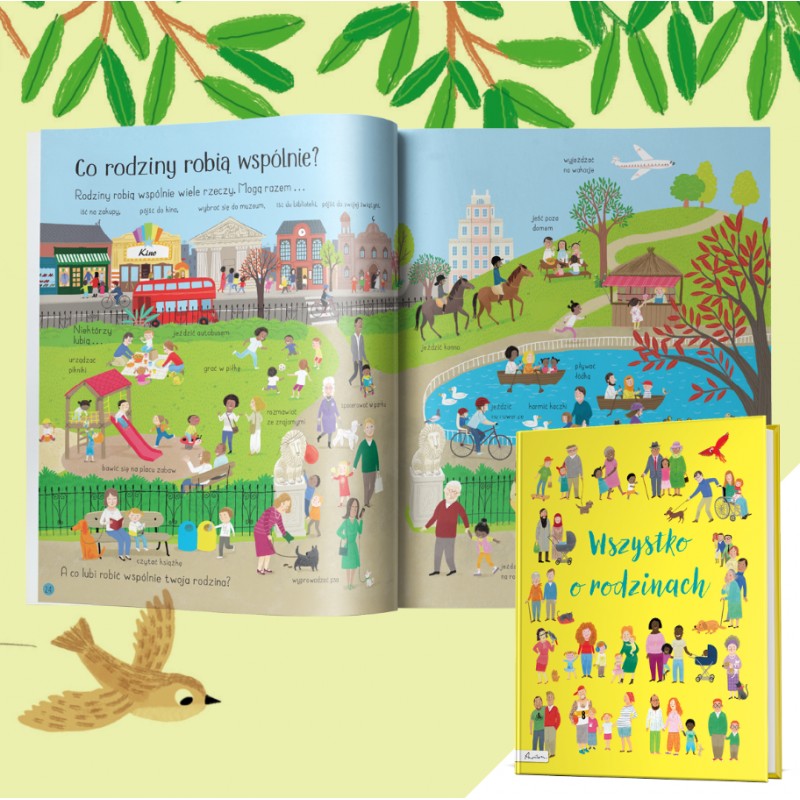 Ta pięknie ilustrowana książka mówi m.in. o tym, kto jest kim w rodzinie, co to jest drzewo genealogiczne, jak na całym świecie wyglądają domy, codzienność i święta rodzinne. Pokazuje rozmowy, uczucia, zabawy – na wszystkich kontynentach.