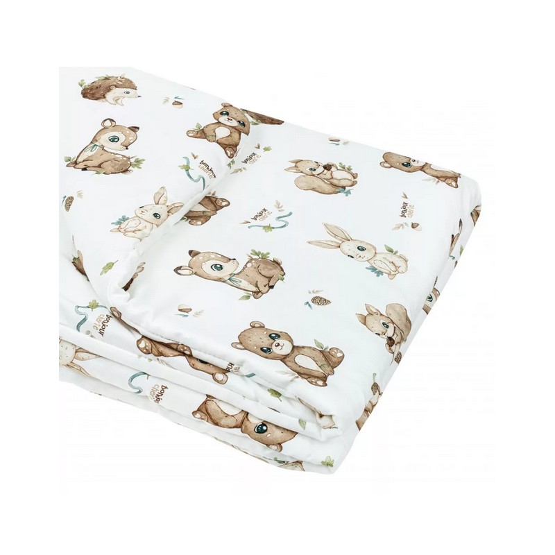 Środek kołderki wypełniony jest antyalergiczną włókniną wysokopuszystą silikonową. Zapewnia ona dziecku ciepło oraz wygodę podczas użytkowania. Kołderka idealnie sprawdza się od pierwszych dni życia, do łóżeczka, na popołudniową drzemkę, do wózka,nosidełka a także jako ulubiona kołderka na wszelkie wyjazdy lub jako mięciutka mata dla dziecka.