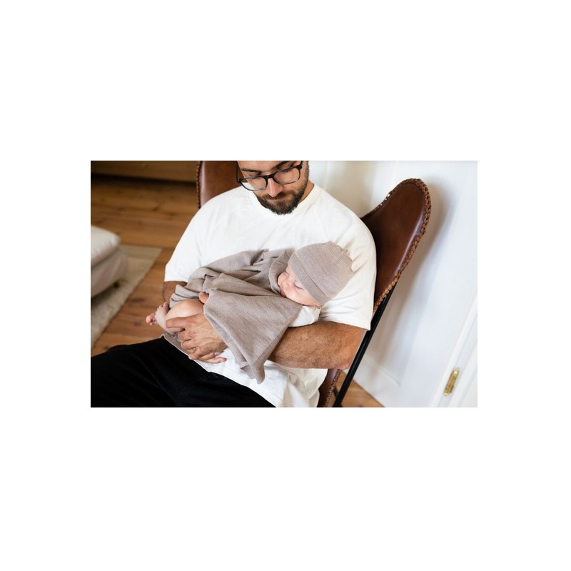 POOFI Kocyk merino COZY + czapeczka soft brown YA-310