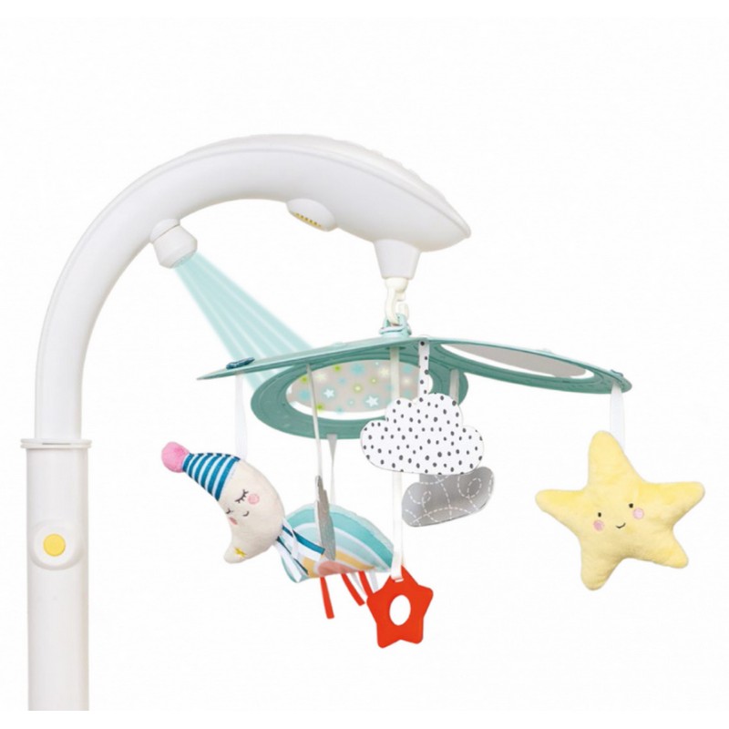 Karuzela Mini Księżyc marki Taf Toys łączy klasyczne melodie Mozarta, Chopina i Vivaldiego, obracający się baldachim z gwiazdkami oraz panel sterowania, by stymulować rozwój zmysłów i emocji Twojego dziecka.
