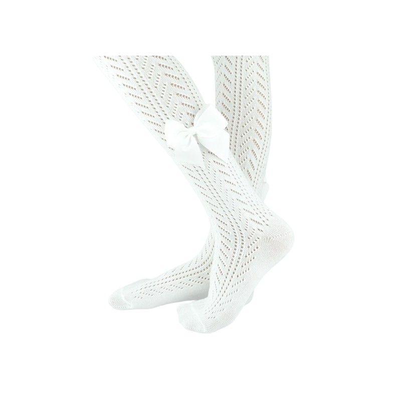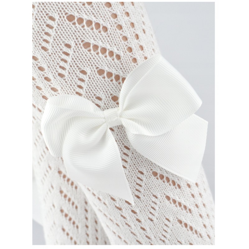 Rajstopy bawełna ażurowe z kokardką ecru 80-86 cm
