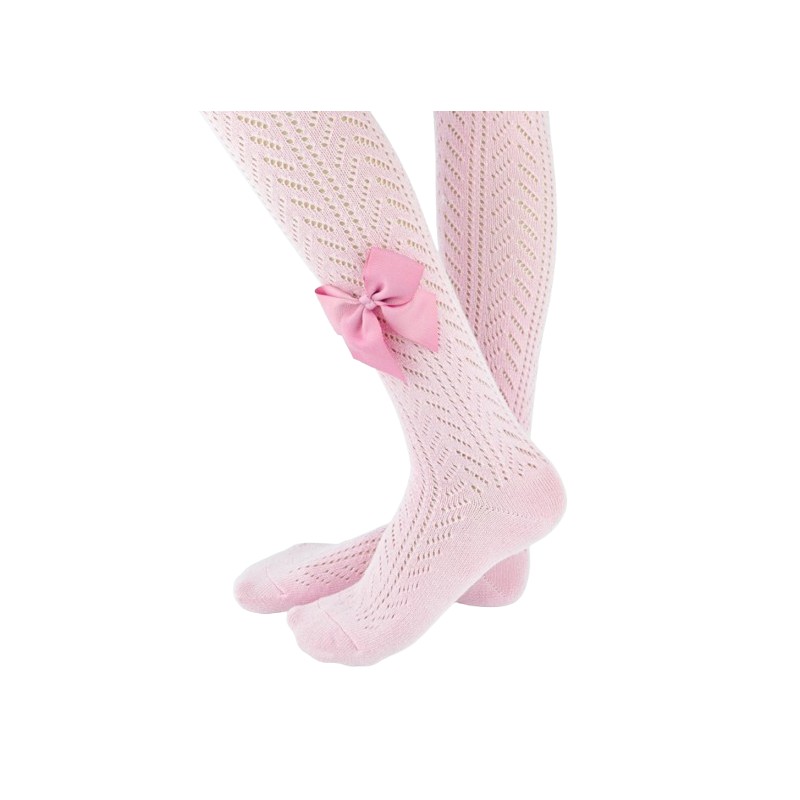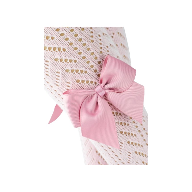 Rajstopy bawełna ażurowe z kokardką pudrowy róż 68-74 cm
