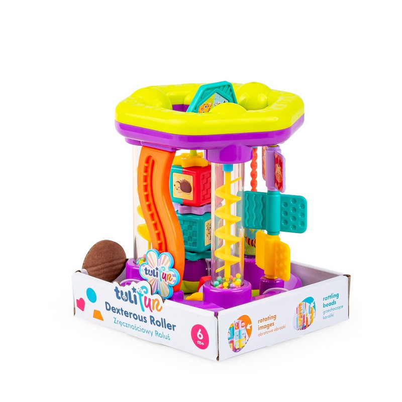 Jedna zabawka, w której kryje się cała masa atrakcji dla bobasa! Na każdej ze ścianek Rolusia znajduje się inna zabawa, aktywizująca małe rączki.
