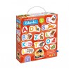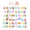 W edukacyjnym zestawie znajdziecie 24 duże dwuelementowe układanki, które przedstawiają urocze zwierzaki na kolejne litery alfabetu (są podpisane!) oraz poradnik pełen pomysłów na mądre zabawy. Układanie puzzli to znakomity sposób na poznawanie liter i początek przygody z czytaniem i pisaniem.