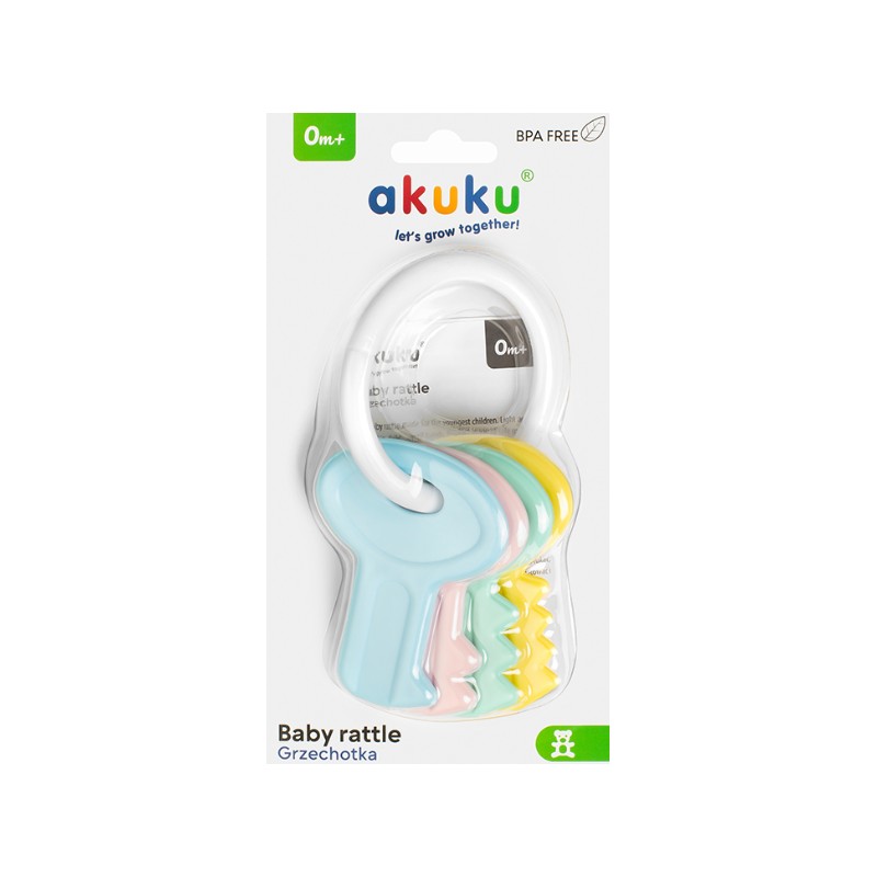 Nasza grzechotka znakomicie sprawdzi się jako pierwsza zabawka dla maluszka, ponieważ jest lekka i poręczna. Dziecku łatwo jest ją chwycić i utrzymać w rączkach. Ma delikatnie zaokrąglone kształty. Zabawka zachęca dziecko do ćwiczeń i zabawy, stymulując jego rozwój psychomotoryczny.