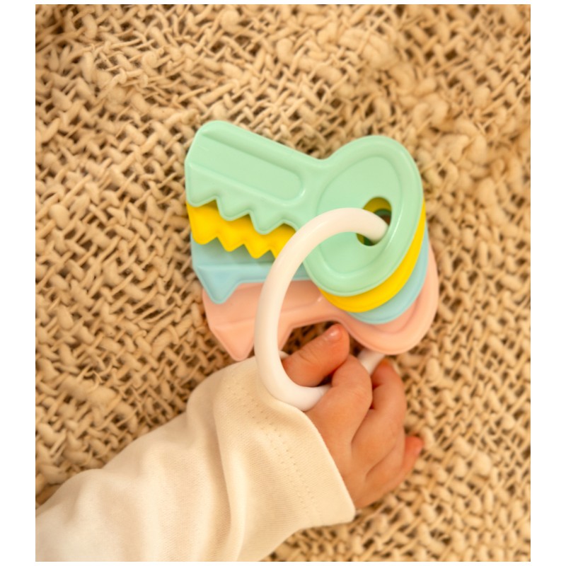 Instrukcja: Zabawkę utrzymuj w czystości. Przed pierwszym użyciem sparz grzechotkę wrzątkiem. Nie gotuj jej i nie dezynfekuj. Dla zachowania higieny myj regularnie grzechotkę w delikatnym płynie, dokładnie wypłucz i pozostaw do wyschnięcia.