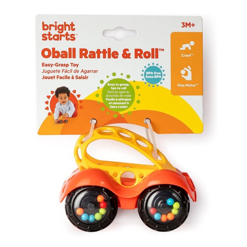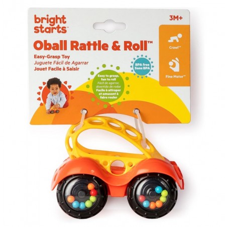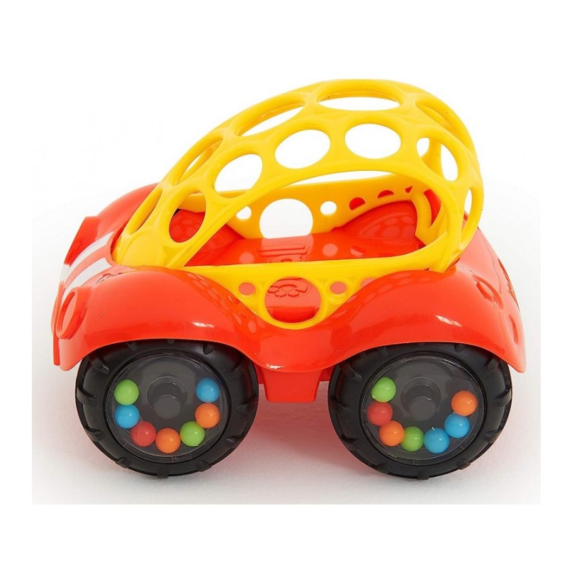 Grzechotka OBALL to kolorowy samochodzik z elastycznymi i łatwymi do uchwycenia przez maluszka elementami charakterystycznymi dla piłek Oball. W przezroczystych kołach autka znajdują się kolorowe koraliki, które grzechoczą podczas jazdy. Łatwy do zgniatania, chwytania oraz gryzienia.