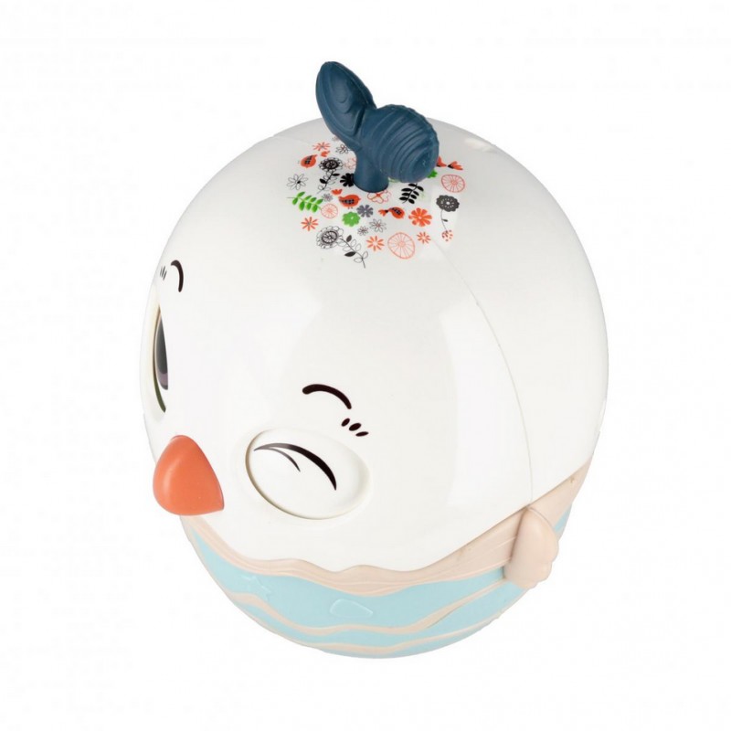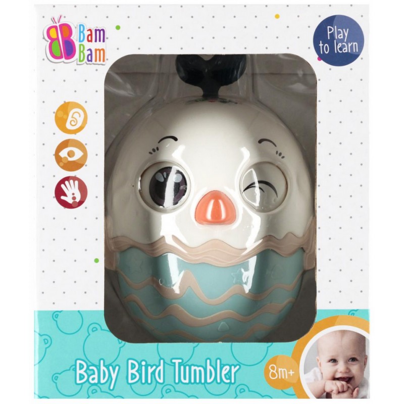 Zabawka, dzięki specjalnie zaprojektowanemu środkowi ciężkości zawsze wraca do pionu, niezależnie od tego, jak zostanie popchnięta. Wewnątrz zabawki znajduje się dzwoneczek, który wydaje radosny dźwięk podczas każdego ruchu, dostarczając maluchowi dodatkowej radości.