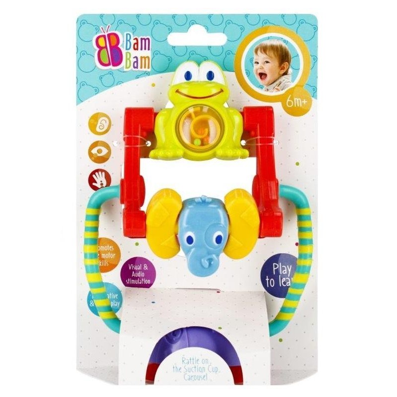 Karuzela na przyssawkę BAM BAM to zabawka edukacyjna przeznaczona dla maluchów od 6m+.