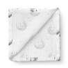 - Lekki i przewiewny kocyk – niezastąpiony podczas spacerów, drzemek i letnich dni. Bambusowa tkanina jest delikatna, ale jednocześnie wytrzymała, dzięki czemu pieluszka sprawdzi się jako okrycie wózka, gondoli czy fotelika samochodowego.