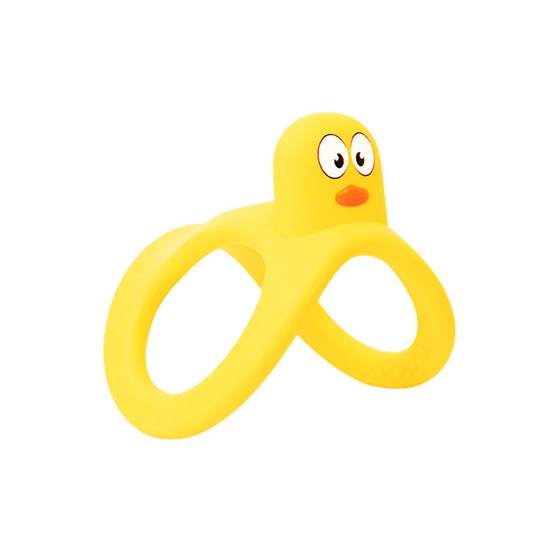 Silikonowy gryzak dla niemowlaka kształtem przypomina kaczuszkę. To idealny pierwszy gryzak dla dzieci, ponieważ został zaprojektowany z myślą o najmłodszych.