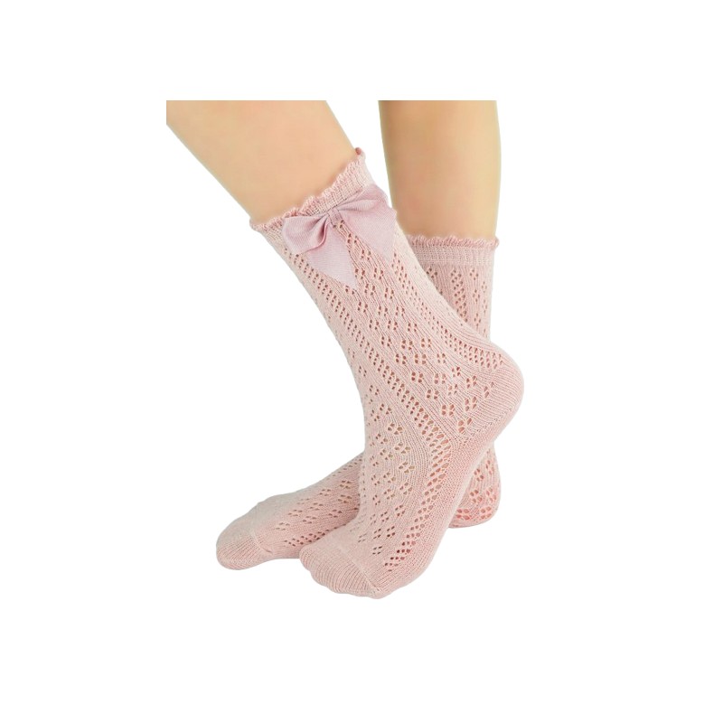 Idealny wybór na specjalne okazje i codzienne stylizacje. Wykonane z wysokiej jakości bawełny (75%), miękkie i przyjazne dla delikatnej skóry dziecka. Ażurowy wzór nadaje im elegancji, a kokardka na boku dodaje uroku.