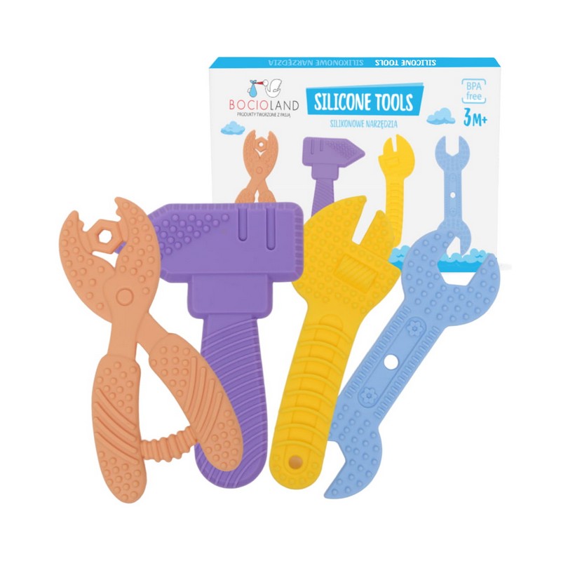 Bocioland – Zestaw silikonowych gryzaków w kształcie narzędzi - Rozwój przez zabawę – ulga podczas ząbkowania