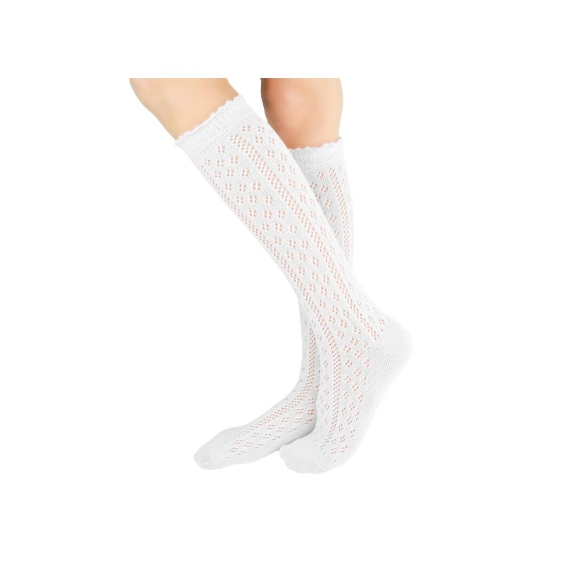 Idealny wybór na specjalne okazje i codzienne stylizacje. Wykonane z wysokiej jakości bawełny (75%), miękkie i przyjazne dla delikatnej skóry dziecka. Ażurowy wzór nadaje im elegancji.